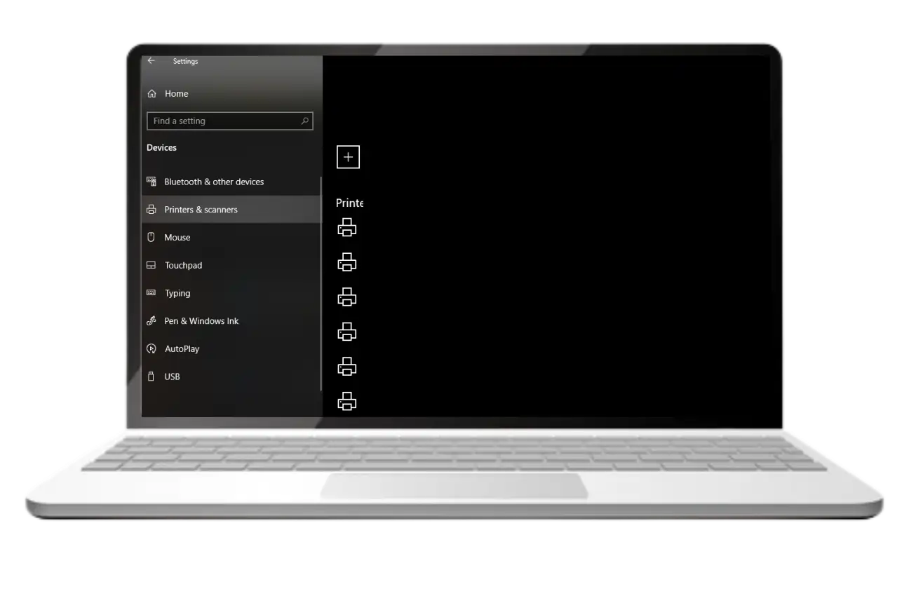 Next, go to the Settings menu in Windows 10, select Devices and select Printers & Scanners on the left-hand menu.
